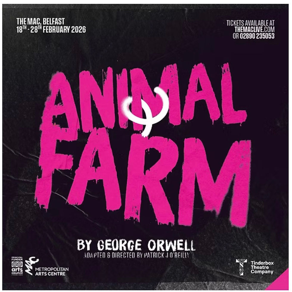 Last night’s performance of Animal Farm at The MAC was nothing short of exhilarating. Adapted and directed by Patrick J O’Reilly, this innovative rendition by the Tinderbox Theatre Company took George Orwell's classic and infused it with a modern urgency that resonates deeply with the present moment. The auditorium was a full house, buzzing with anticipation, and the energy was palpable, only to erupt into rapturous applause as the final curtain fell.